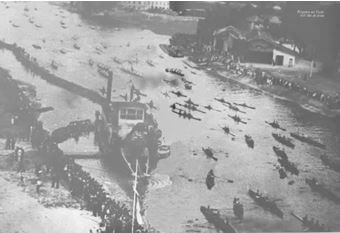 Partida da expedição que explorou o rio Tietê (Anhembi) em 1905.